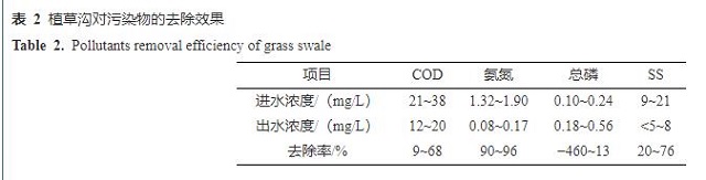 與生物滯留池和透水混凝土相比,植草溝在去除COD、SS和總磷方面不具優勢,特別是總磷。但是植草溝在去除氨氮方面有明顯優勢,平均去除率為84.4%。此外,植草溝的建設維護成本僅為116.3元/m2,經濟優勢顯著[27]。