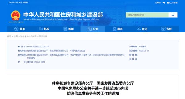 近日住房和城鄉建設部、國家發展改革委、中國氣象局發布關于進一步規范城市內澇防治信息發布等有關工作的通知。