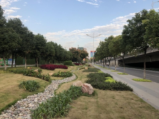 城市道路兩側(cè)的綠地也是改造的重點(diǎn)區(qū)域之一。在德陽(yáng)市青衣江路,除了新增設(shè)的雨水花園外,道路兩側(cè)的綠地都比過(guò)去變“矮”了一些。