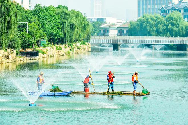▲巡河員打撈河道水草