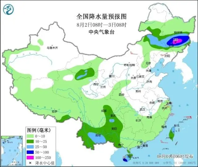中央氣象臺預計,8月1日白天到夜間,京津冀等地強降雨明顯減弱,但河北中西部和北部沿山地區、北京、天津北部以及河南北部和西部、四川東部和南部、貴州、云南等地部分地區有中到大雨,河北北部、北京西部沿山地區及吉林北部、四川東南部、云南西北部等地有分散性暴雨(50——70毫米)。上述部分地區伴有短時強降水(最大小時降雨量30——50毫米,局地可超過60毫米),黑龍江西北部等地的局地將有雷暴大風或冰雹天氣。