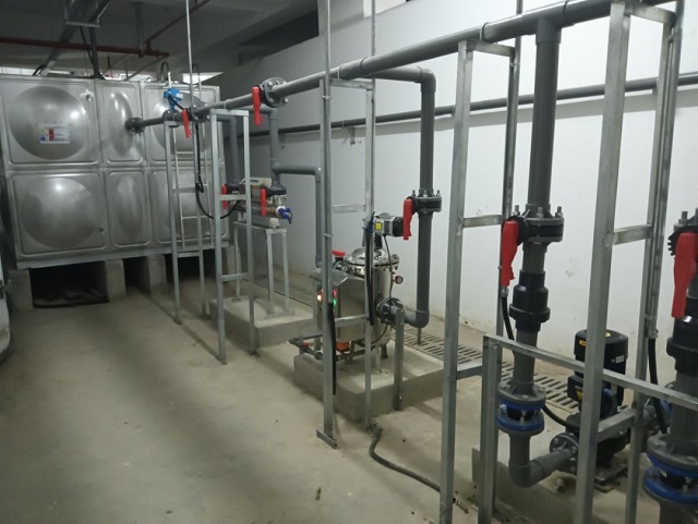 建筑內,也“別有洞天”——設置雨水回收系統,收集屋面及道路雨水后,采用“就地預處理單元+生化處理系統”工藝將凈化后的雨水輸送到清水箱中,用于場地內綠化的澆灌,以“水循環”實現水資源高效利用。