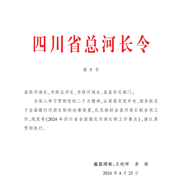 2024年四川省全面強(qiáng)化河湖長(zhǎng)制工作要點(diǎn)