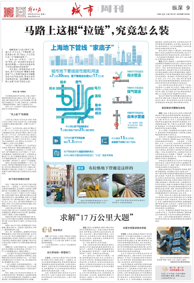 日前,《解放日報》記者訪談了上海市政總院總工程師(結構)王恒棟,就城市地下管線建設和管理方面作深入探討,文章刊發于8月5日出版的《解放日報》縱深專欄,原標題為《馬路上這根“拉鏈”,究竟怎么裝》。