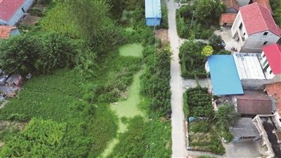 四嶺村8組地勢相對平坦,農(nóng)舍坐北朝南,呈一字排列,近年來,由于基礎設施建設相對滯后,生活污水都流到村口處約5畝大小的堰塘內(nèi),導致雜草叢生、臭味難聞,村民對此處都是避之不及。