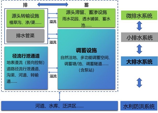 超標徑流蓄排系統(tǒng):也稱大排水系統(tǒng),負責有序地將超過排水管渠能力的雨水通過行泄和調(diào)蓄等措施安全控制,是城市洪澇韌性的核心,也是目前很多城市的短板。